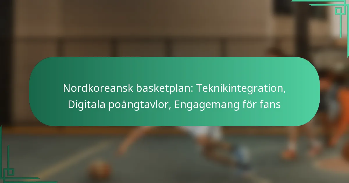 Nordkoreanska basketplaner integrerar alltmer avancerad teknik för att förbättra spelet, träning och engagemanget från fans. Dessa innovationer inkluderar digitala resultattavlor, verktyg för prestationsanalys och smarta planfunktioner som tillsammans förbättrar den övergripande upplevelsen för både spelare och åskådare.