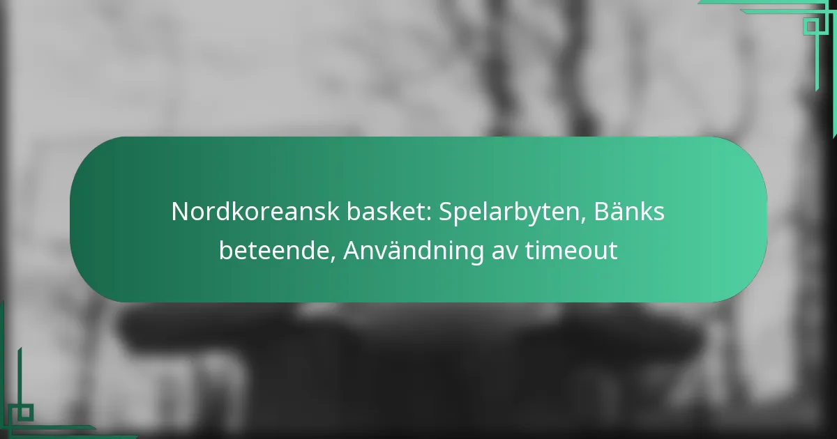 Nordkoreansk basket betonar strategiska spelarbyten för att optimera lagets prestation samtidigt som man respekterar kulturella normer. Bänkkondukt är strikt reglerad för att främja disciplin och öka lagets sammanhållning, vilket säkerställer effektiv kommunikation under matcherna. Dessutom används timeout som viktiga verktyg för tränare att justera taktik och motivera spelare, vilket spelar en avgörande roll för att påverka matchens utgång.