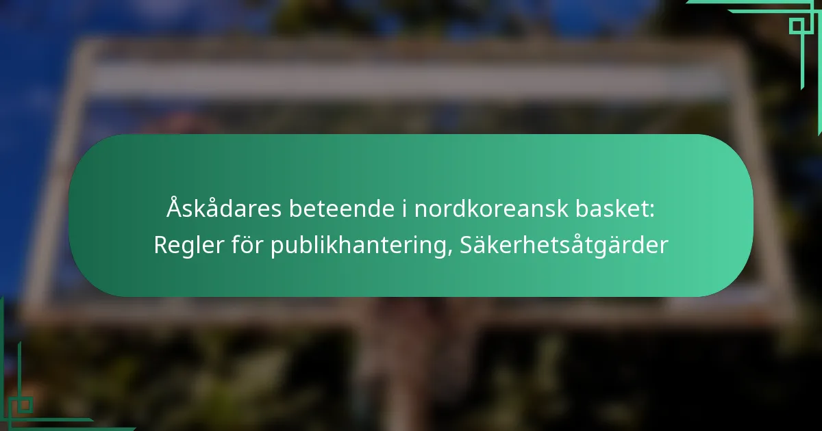 I Nordkorea regleras åskådarnas beteende vid basketmatcher av strikta regler för folksamlingar som syftar till att upprätthålla ordning och disciplin bland deltagarna. Dessa regler dikterar inte bara acceptabla beteenden utan beskriver också konsekvenserna av överträdelser, vilket återspeglar nationens kulturella och historiska kontext. Dessutom säkerställer omfattande säkerhetsåtgärder, inklusive närvaro av personal och noggranna säkerhetskontroller, säkerheten för alla åskådare samtidigt som en unik atmosfär formas av politisk indoktrinering och nationell stolthet.