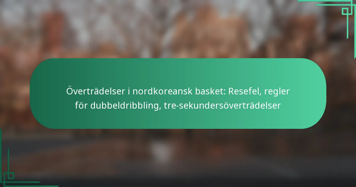 I nordkoreansk basket är strikt efterlevnad av regler angående resor, dubbeldribbling och tre-sekundersöverträdelser avgörande för att upprätthålla spelets integritet. Resor inträffar när spelare rör sig utan att dribbla, medan reglerna för dubbeldribbling förhindrar spelare från att återuppta sin dribbling efter att ha stannat. Dessutom säkerställer tre-sekundersöverträdelser att offensiva spelare förblir aktiva och engagerade, vilket främjar ett snabbare och mer dynamiskt spel.